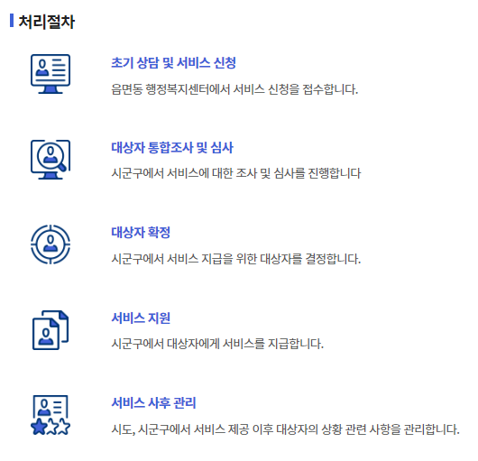 | 서비스 지원 | 시.군.구 에서 대상자에게 서비스를 지급합니다. |